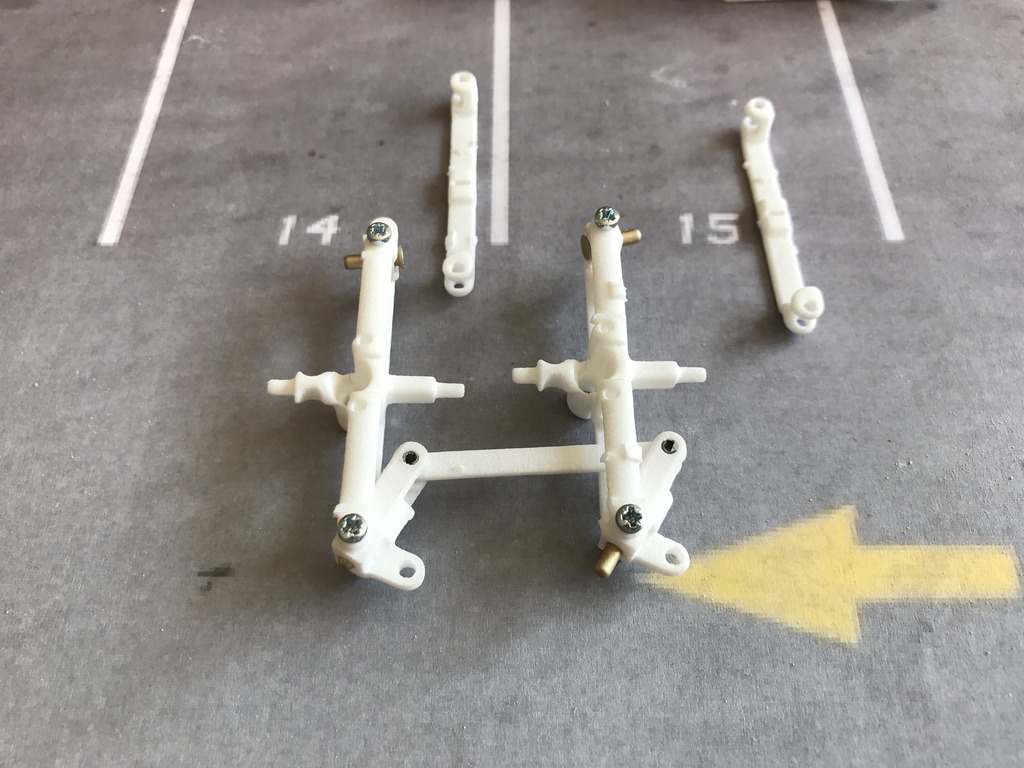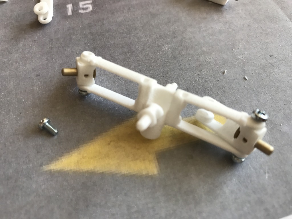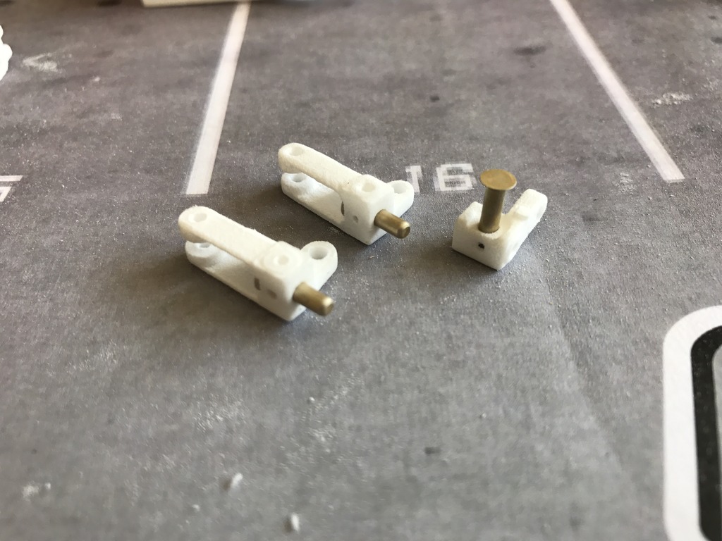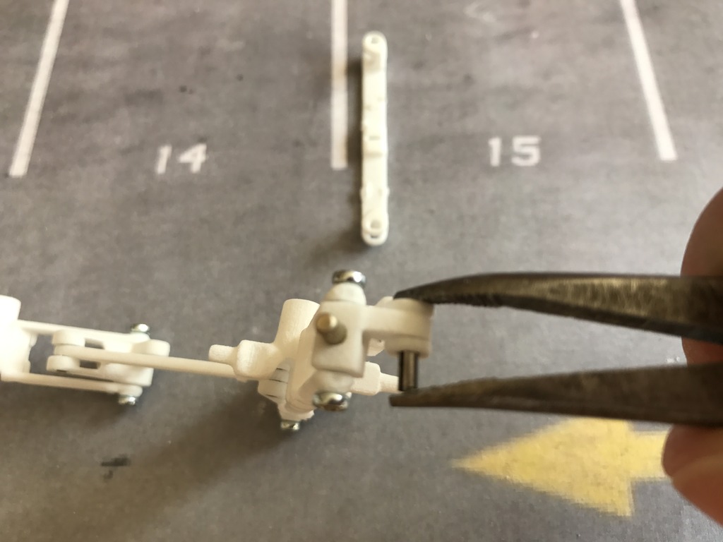 Cut the 1mm brass bar shorter so it just shows through the Steering Linkage.