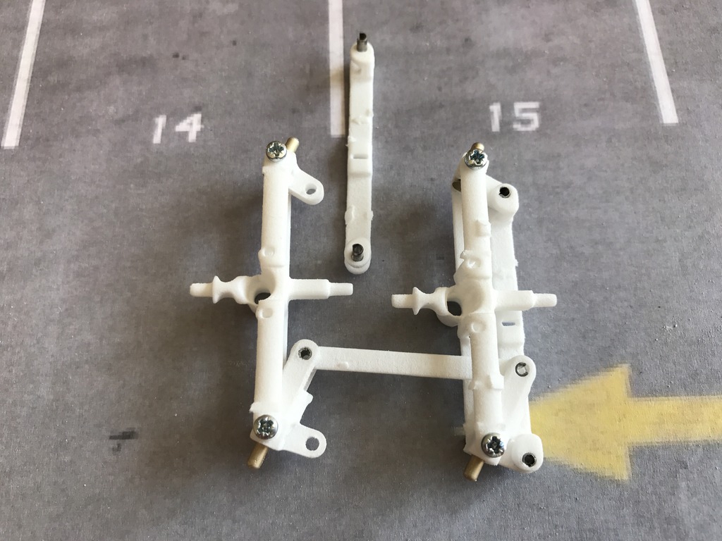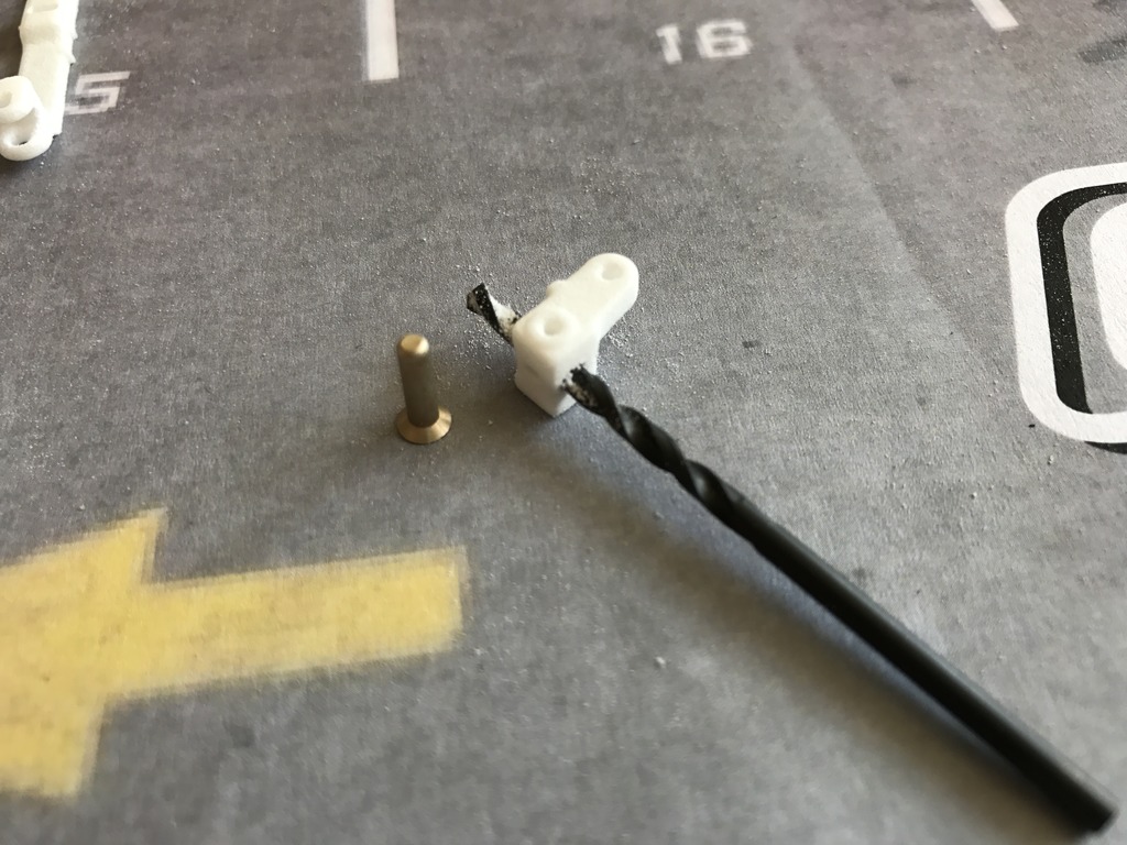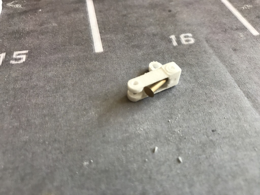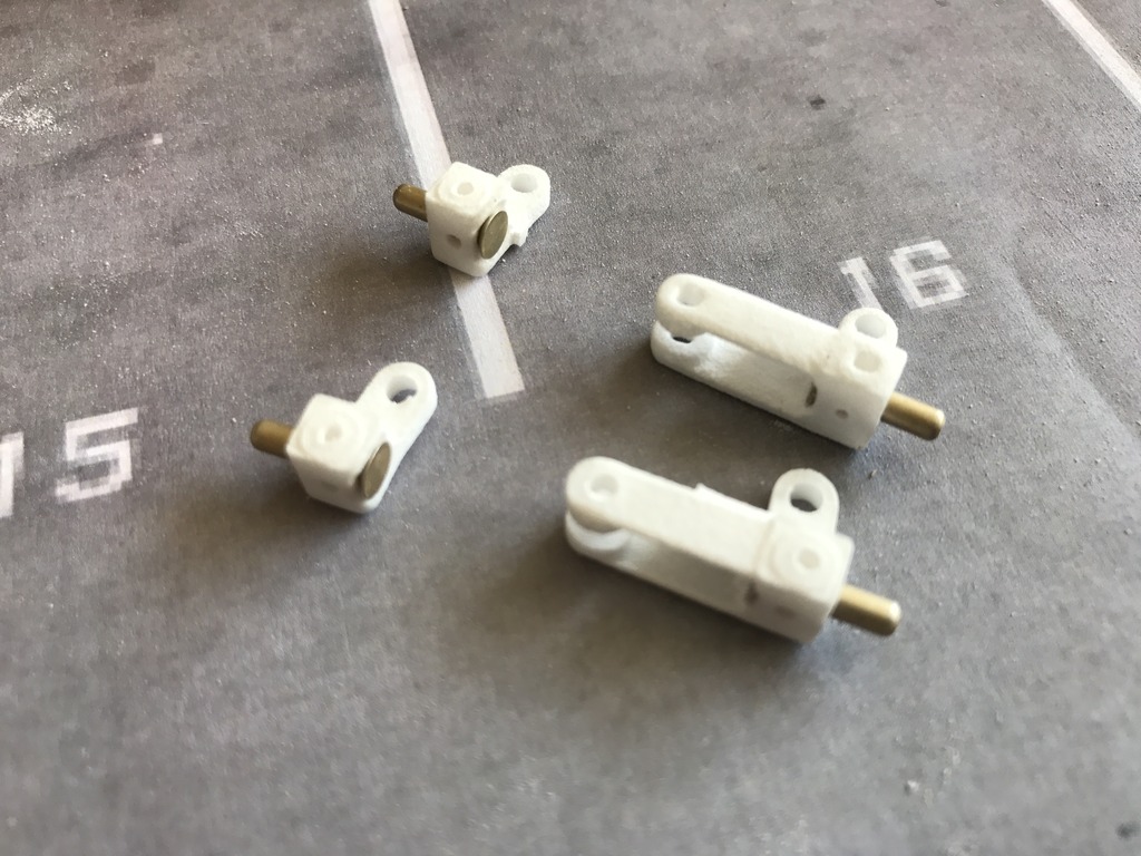 Cut the 1mm brass bar shorter so it just shows through the Steering Linkage.