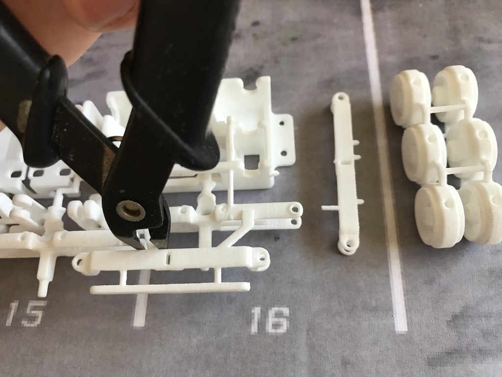 This is how the running gear is supplied, the components are on a sprue just like a model kit.  Looks daunting but actually it’s easy, let’s get everything apart.