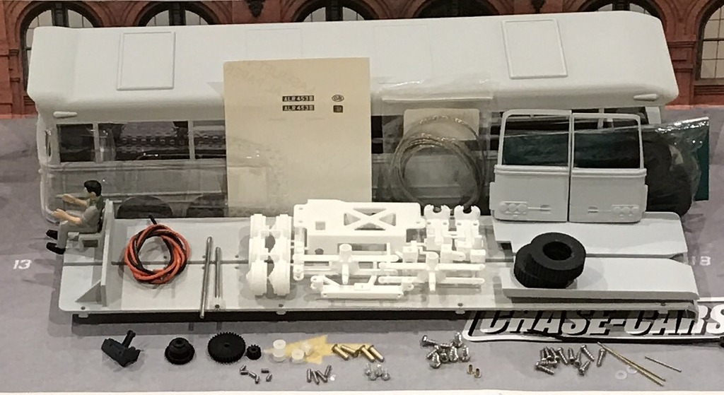 Back to the slot car!  This is what you get in the kit.  The only thing you need to supply is the motor, a long can type.  I used a Ninco NC-2 but anything that’s got around 260g.cm of torque at 18000rpm will be fine, just make sure you get one with the short armature so the pinion fits as shown.